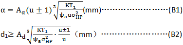 齒寬系數ψa見表B3ψd=ψa(u±1)/2。
