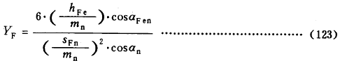 式(144)适用於标準或變位的直齒輪和斜齒輪。大、小輪的YFa應分别確定。