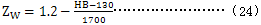 HB——齒輪副中較軟齒輪輪齒面的布氏硬度值;當HB<130時,取Z
